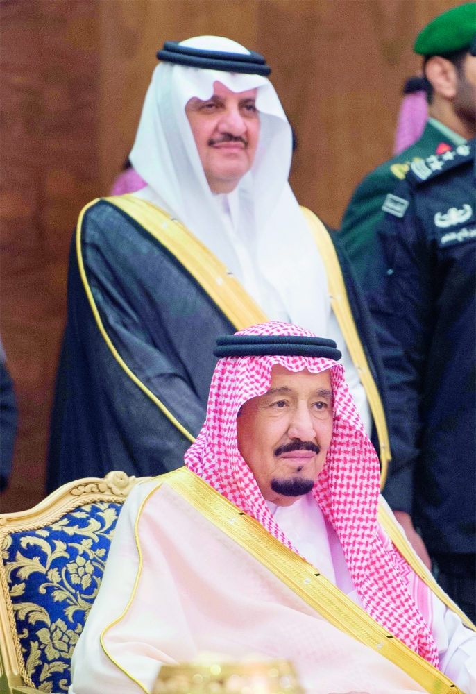 وكان في استقبال خادم الحرمين الشريفين لدى وصوله مقر إمارة المنطقة الشرقية -يرافقه أمير منطقة المدينة المنورة الأمير فيصل بن سلمان بن عبدالعزيز، والأمير راكان بن سلمان بن عبدالعزيز-، أمير المنطقة الشرقية الأمير سعود بن نايف بن عبدالعزيز، وولي العهد نائب رئيس مجلس الوزراء وزير الداخلية الأمير محمد بن نايف بن عبدالعزيز.