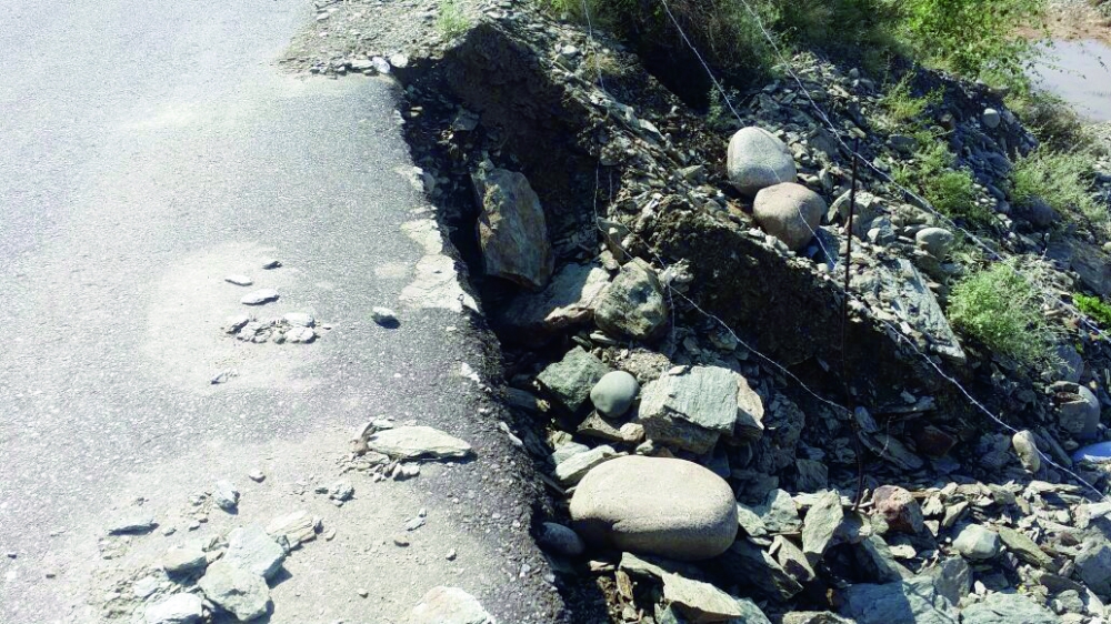 الأضرار التي خلفتها السيول في دويمة الطحاحين بمحايل عسير. (عكاظ)