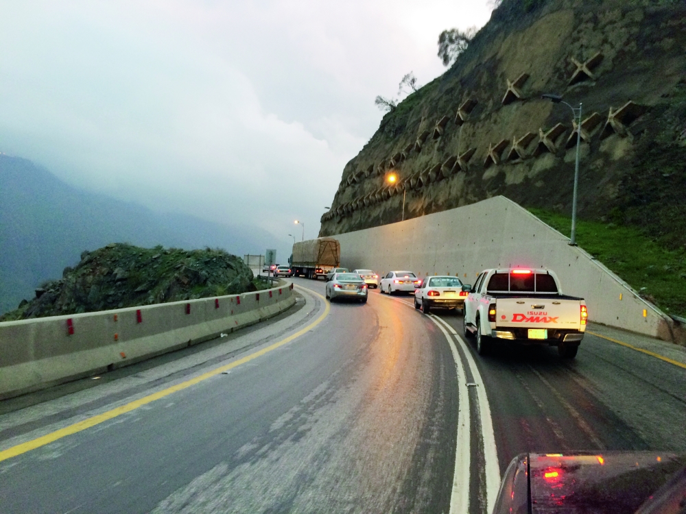 حركة مرورية سلسة خلال الأمطار في الباحة. (عكاظ)