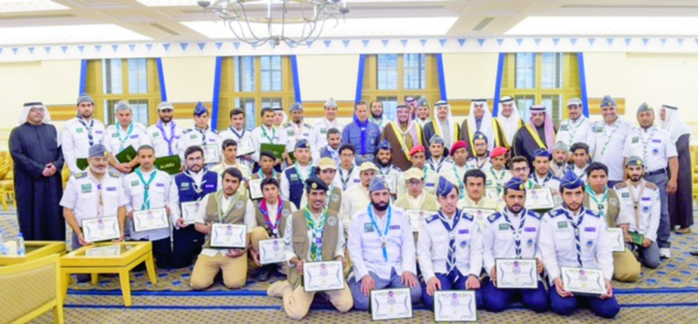 أمير القصيم مع أفراد كشافة المنطقة. (عكاظ)
