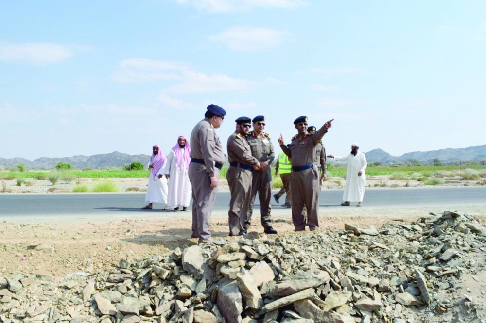 اللواء المطرفي خلال زيارته الميدانية لأحد أودية رابغ. (عكاظ)