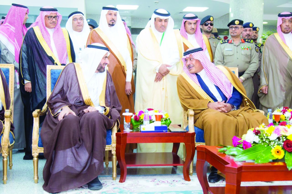 أمير الباحة متحدثا مع وزير الصحة خلال زيارة الأخير للمنطقة أمس الأول. (عكاظ)
