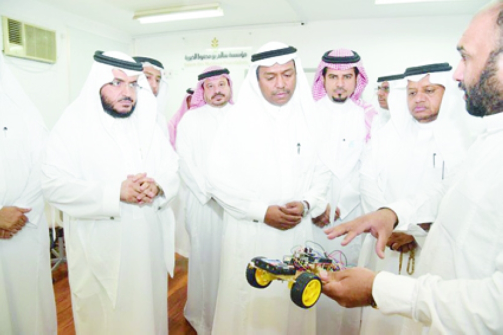 المشاط يطلع على تصميم أحد الموهوبين. (عكاظ)
