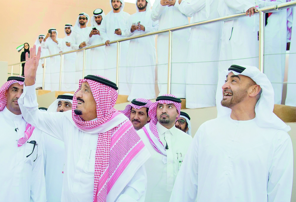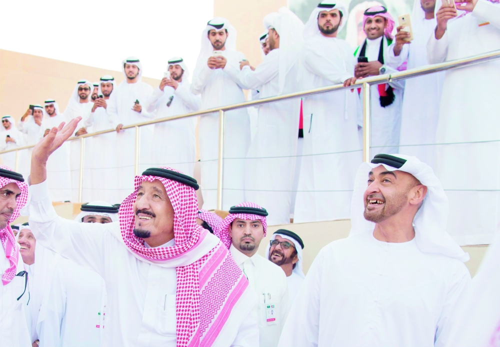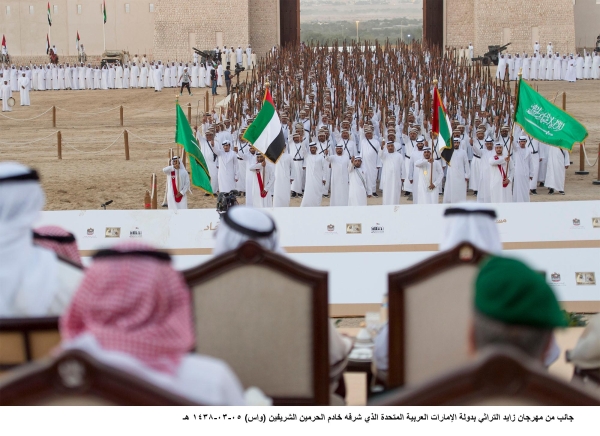 شرف خادم الحرمين الشريفين الملك سلمان بن عبدالعزيز أمس (الأحد) مهرجان زايد التراثي بدولة الإمارات العربية المتحدة.