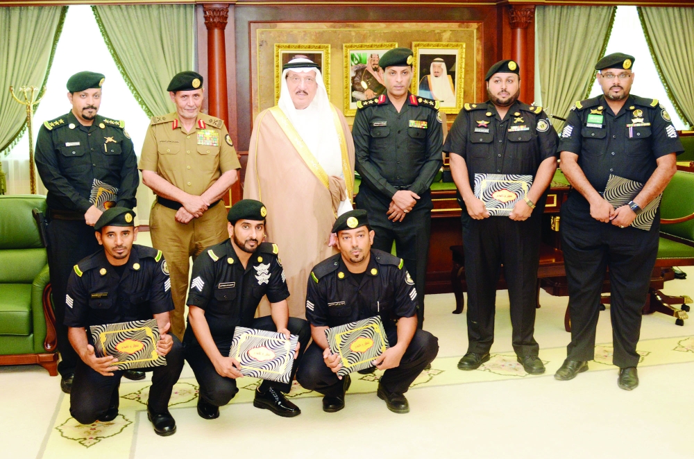 الأمير محمد بن ناصر مع الضباط والأفراد المكرمين. (تصوير: رمزي عبدالكريم)
