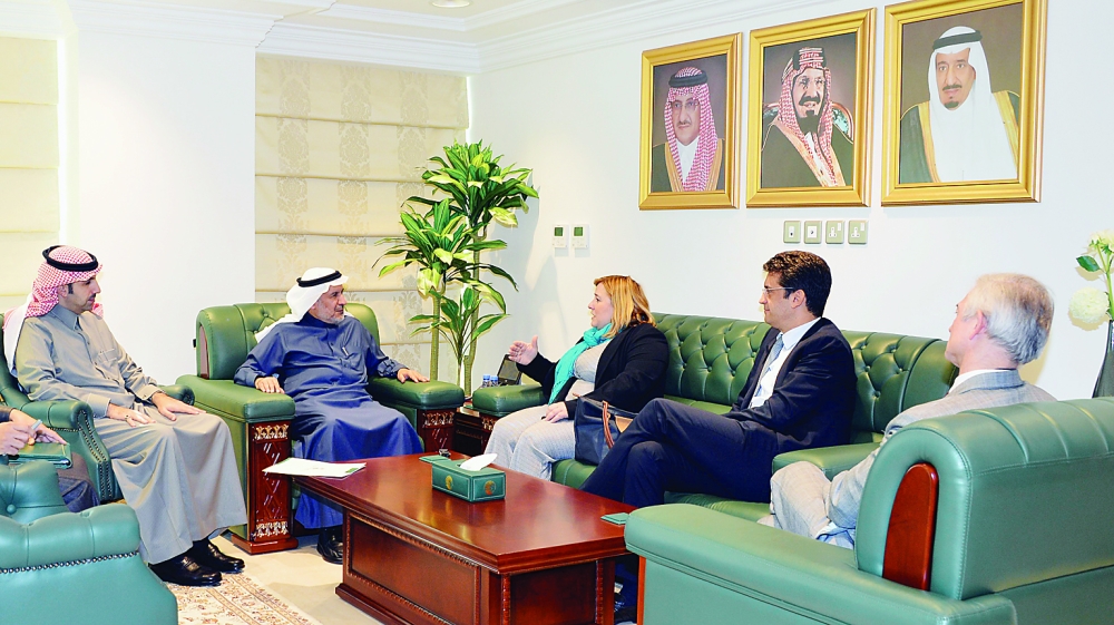 عبدالله الربيعة مستقبلاً رئيس الاتحاد الأوروبي لدى اليمن أمس. (واس)