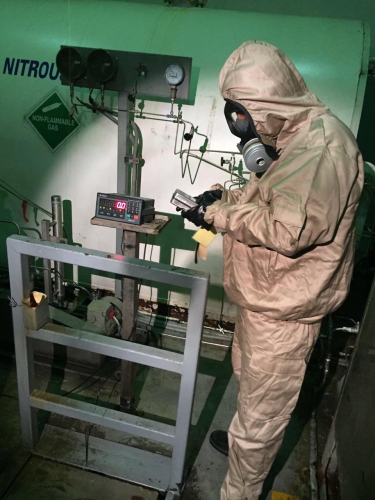 وبين أنه تمت السيطرة على التسرب الذي وقع عند الساعة 1:50 صباحا، وباشرته فرق التدخل في حوادث المواد الكيميائية والخطرة، إذ تم إغلاق مصدر التسرب، واتضح أنه من خزان معدني سعته ستة أطنان بداخل مستودع مخصص له مساحته 100 متر مربع، ويستعمل هذا الغاز في عمليات التخدير الطبي بالمستشفيات.