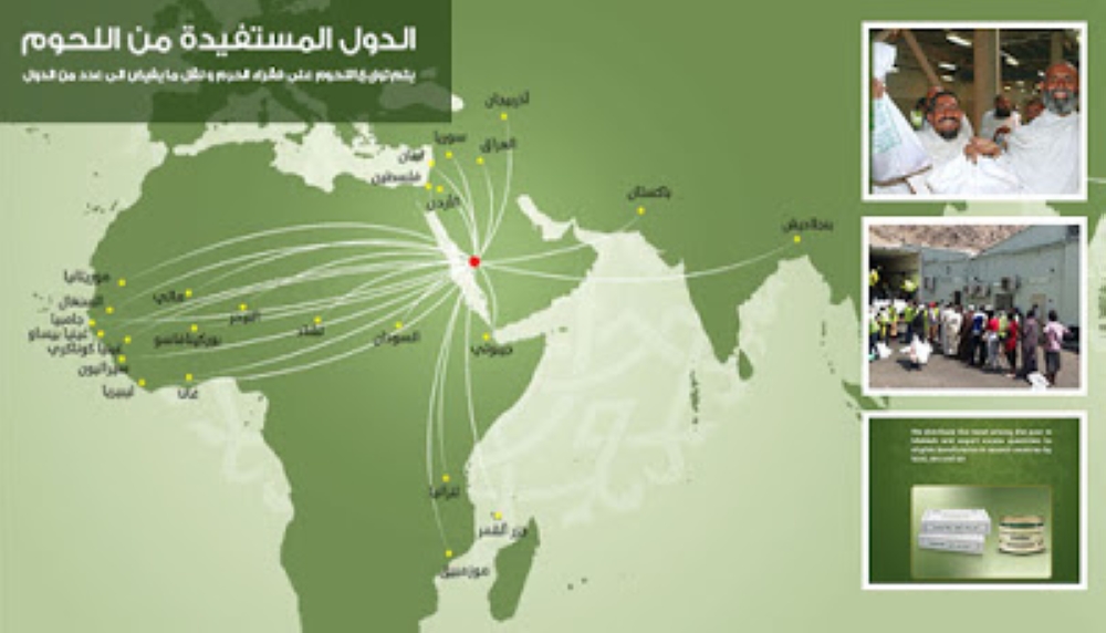 وكان مشروع المملكة العربية السعودية للإفادة من الهدي والأضاحي قد وزع في وقت سابق (734ر712) ذبيحة من لحوم الهدي والأضاحي، من ضمنها توزيع (234ر518) ذبيحة على مستحقيها من فقراء الحرم ، وتوزيع حوالي (270) ذبيحة على مستحقيها لعدد من الجمعيات الخيرية في مختلف مناطق المملكة، وتوزيع نحو (195) ألف ذبيحة مجمدة على مستحقيها في (23) دولة في قارتي آسيا وأفريقيا، براً وبحراً وجواً.