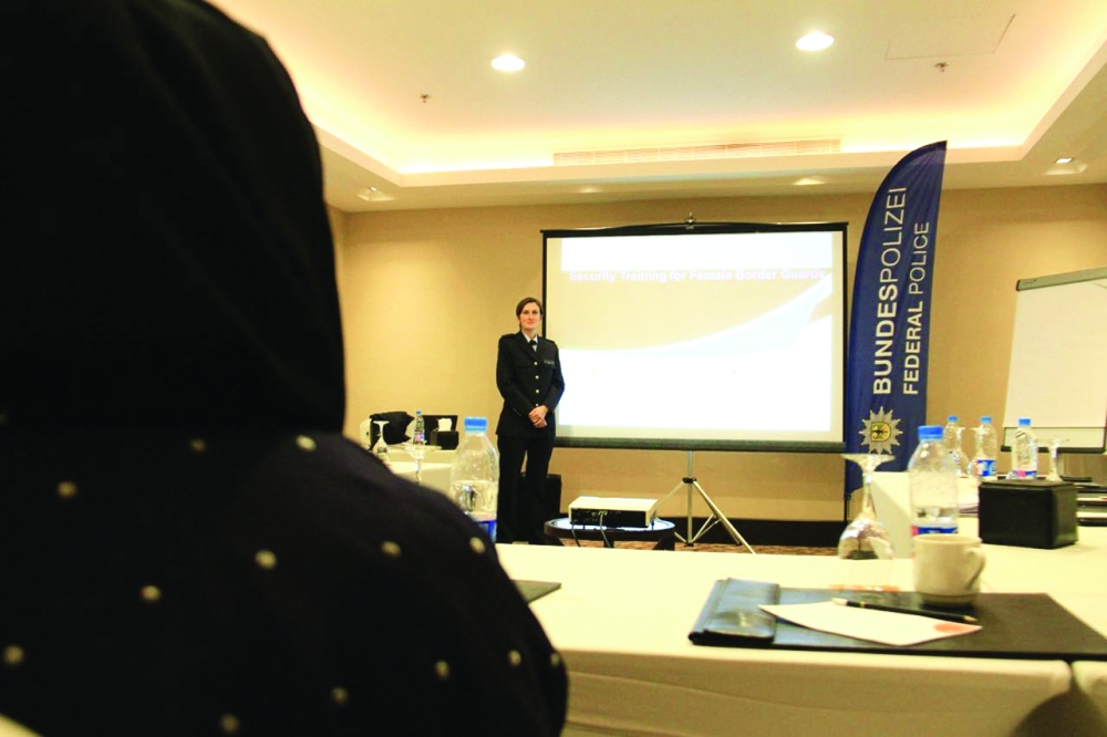 اختمت أمس دورة التدريب الأمني لمفتشات حرس الحدود في مدينة الرياض، التي تأتي في ظل التعاون الأمني المشترك ضمن خطة التدريب العملياتي مع الشرطة الاتحادية الألمانية، بموجب الاتفاقية الموقعة بين وزارة الداخلية السعودية والجانب الألماني. واستمرت الدورة أسبوعا كاملا بمشاركة ١٤ متدربة، وفق برنامج تدريبي شامل تضمن عدة مهارات أبرزها؛ التحقق المبدئي، التحقيق، التفتيش، عمليات القبض والضبط؛ بهدف تطوير وتدريب العنصر النسائي في حرس الحدود.