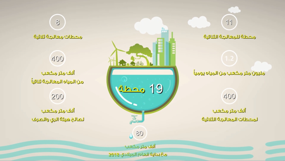 وعلى صعيد محطات المعالجة، أوضح المهندس المطيري أن المديرية تمتلك 19 محطةً للمعالجة منها: 11 للمعالجة الثنائية تقوم بإنتاج أكثر 1.2 مليون متر مكعب من المياه يومياً، يضخ 400 ألف متر مكعب منها لمحطات المعالجة الثلاثية، بينما يتم نقل المتبقي لمياه الخليج العربي، وثماني محطات معالجة ثلاثية تستقبل ما يقارب 400 ألف متر مكعب من المياه المعالجة ثنائياً يومياً وتتم معالجتها وضخ 200 ألف متر مكعب لصالح هيئة الري والصرف التي ستزيد حصتها بواقع 80.000 متر مكعب مع بداية العام الميلادي 2018، بينما يتم ضخ الكمية المتبقية في مياه الخليج العربي.