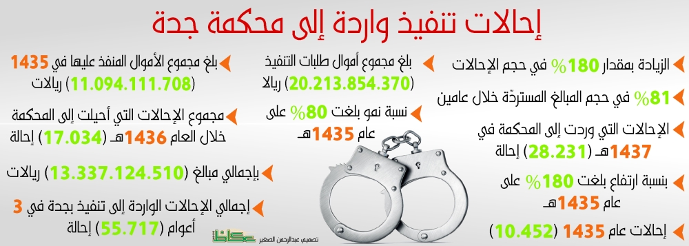 سلّط إحصاء أصدرته وزارة العدل، الضوء على حجم النمو في إعداد الإحالات الواردة إلى محكمة التنفيذ في جدة وحجم الأموال التي عملت المحكمة على استرجاعها خلال الأعوام الثلاثة الماضية، إذ جاءت الزيادة بمقدار 180% في حجم الإحالات، و81% في حجم المبالغ المستردة خلال عامين.