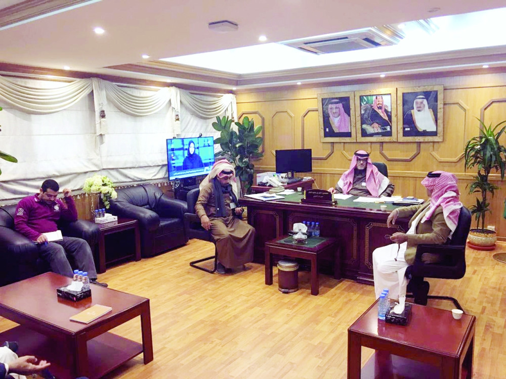 مدير التعليم خلال لقائه لجنة المتابعة بأم الحمام. (عكاظ)