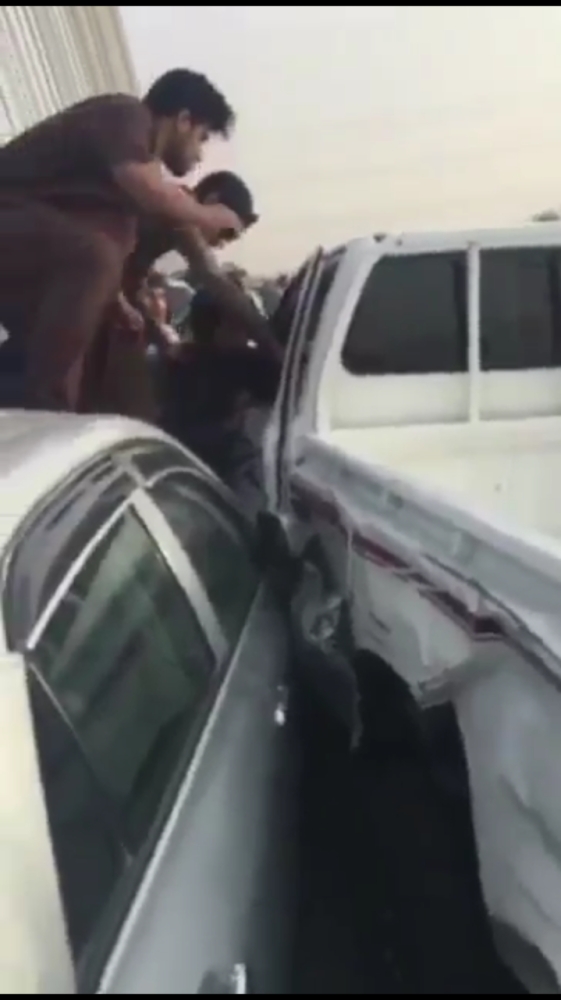 صورة متداولة من مقطع الفيديو عقب ضبط قائد الهايلكس. (مواقع التواصل)