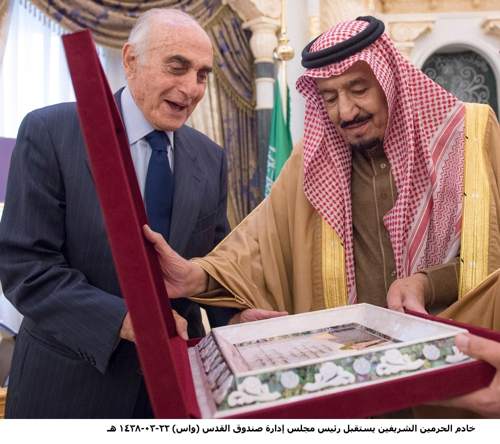 خادم الحرمين يتسلم درع القدس للانتماء والعطاء تقديراً لدعمه للشعب الفلسطيني