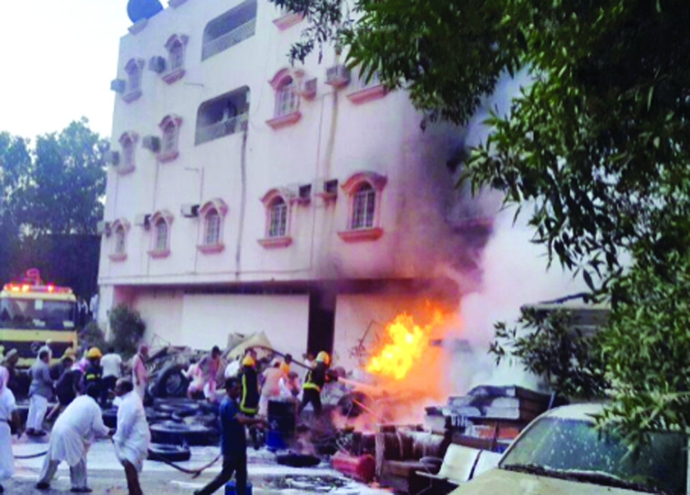 النيران تتصاعد من الموقع. (عكاظ)