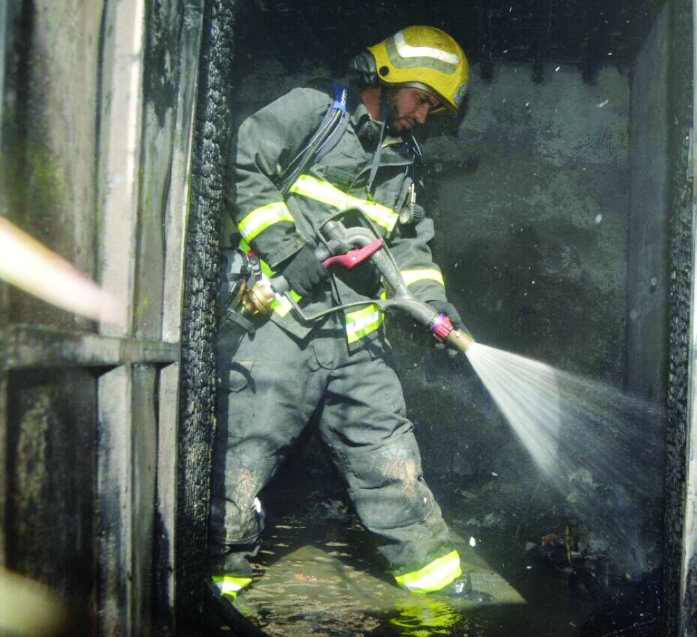 الدفاع المدني يباشر إطفاء الحريق. (عكاظ)