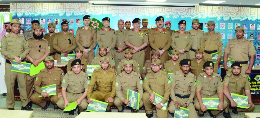 صورة جماعية للخريجين بحضور اللواء الدويسي.(عكاظ)