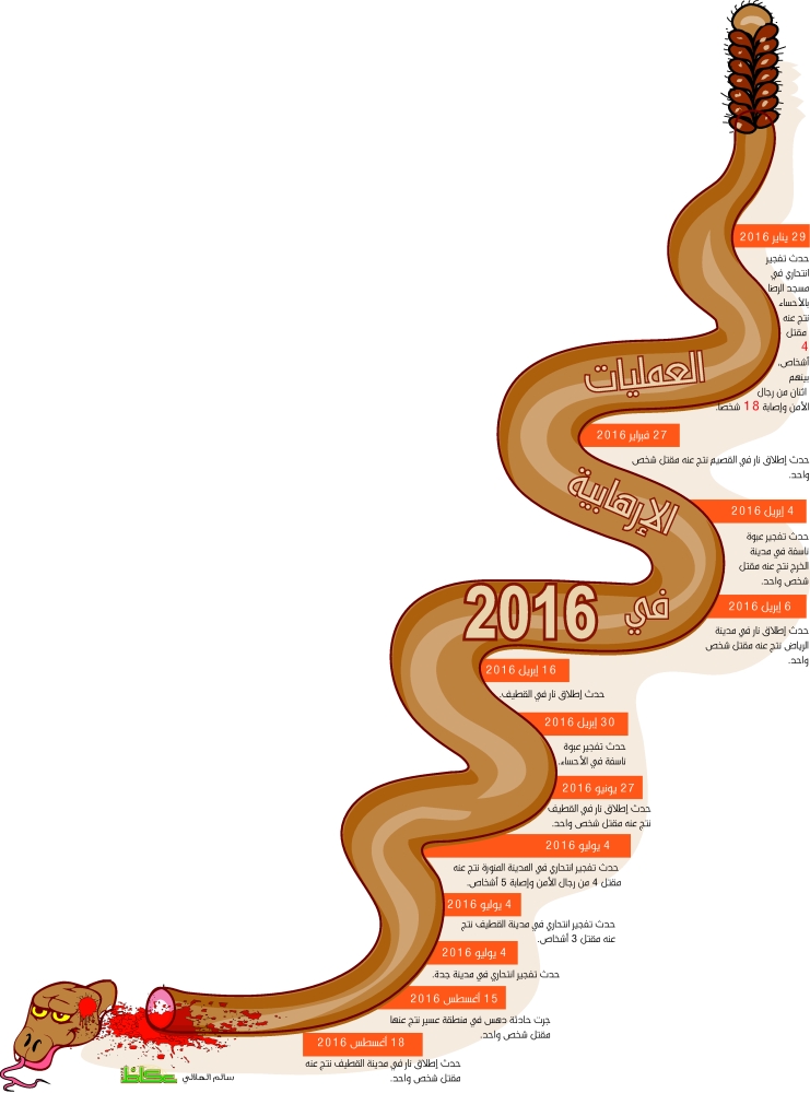 الجماعات الإرهابية والمتطرفة اعتدت في عام ٢٠١٦ على المصلين داخل المساجد، وعلى حُرمة مكة والمدينة، وعلى أقارب وأمهات وإخوة وآباء وأقارب، وعلى رجال الأمن الذين يرابطون في حراسة المجتمع، ولم تردعهم الأماكن الفاضلة ولا عصمة الأنفس، كما لم تردعهم حُرمة وقدسية شهر رمضان، وهذا كله بحسب حملة السكينة لمكافحة الإرهاب يصب في مسار الانحطاط والحضيض.