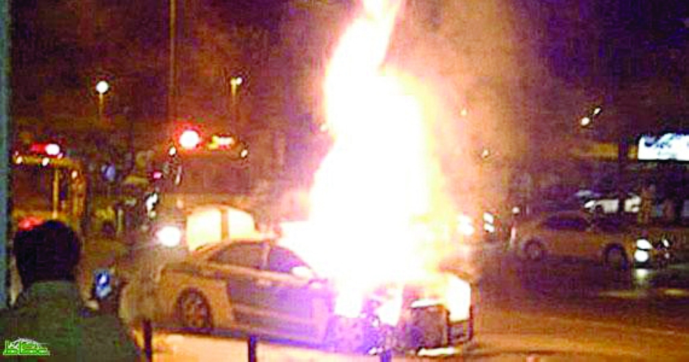 صورة من اعتداءات إرهابية على سيارة أمنية في القطيف. (أرشيفية)