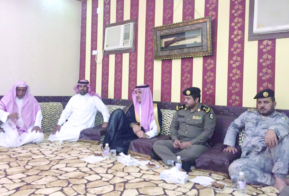 محافظ الليث مقدما التعازي لذوي الشهيد البركاتي. (واس)