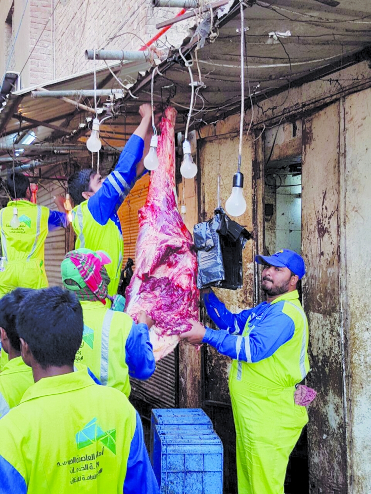 لحوم فاسدة لدى مصادرتها من قبل فرق البلدية. (عكاظ)