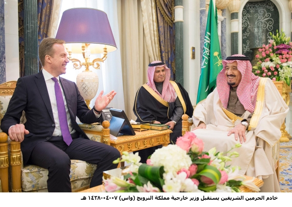 خادم الحرمين يستقبل وزير خارجية النرويج