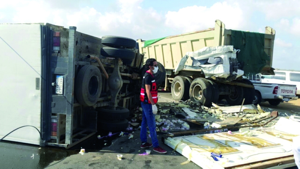 وأوضح شهود عيان أن الشاحنة محملة بـ«آيس كريم» ولم يصب قائد الشاحنة بأي أذى، بالرغم من تحطم شاحنته وانشطارها إلى أجزاء، مشيرين إلى أن سبب الحادثة توقف الشاحنة لعدة أيام بجانب الطريق دون سحبها من قبل الجهات المعنية.