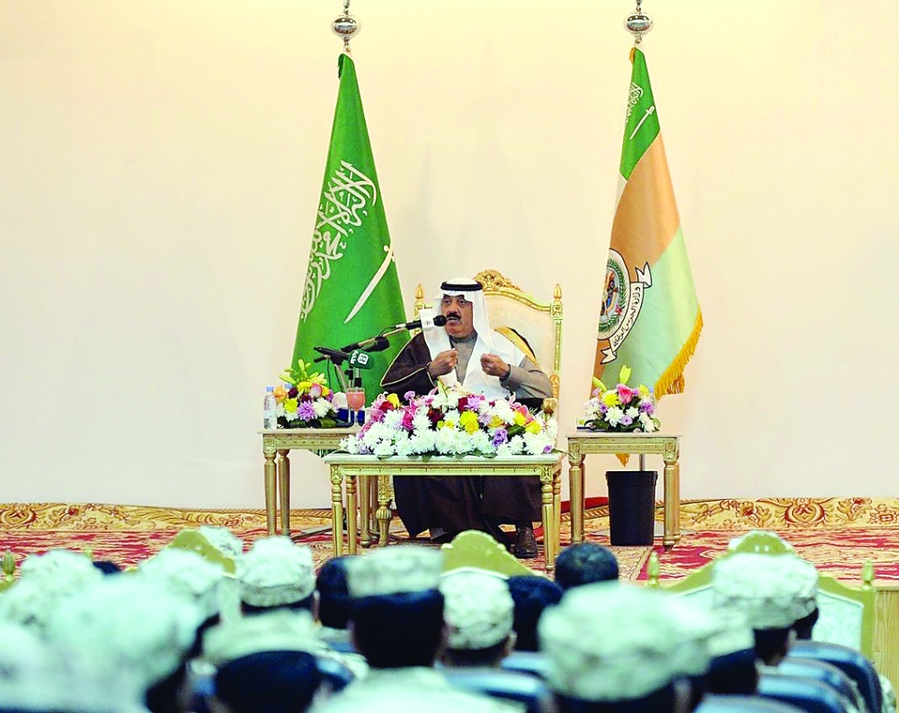 الأمير متعب بن عبدالله متحدثا لضباط وأفراد لواء الطيران بالحرس الوطني. (واس)