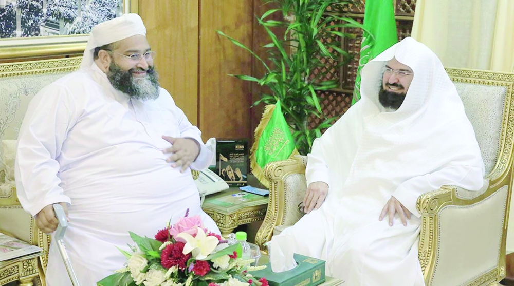 السديس مستقبلاً رئيس مجلس علماء باكستان أمس (واس)