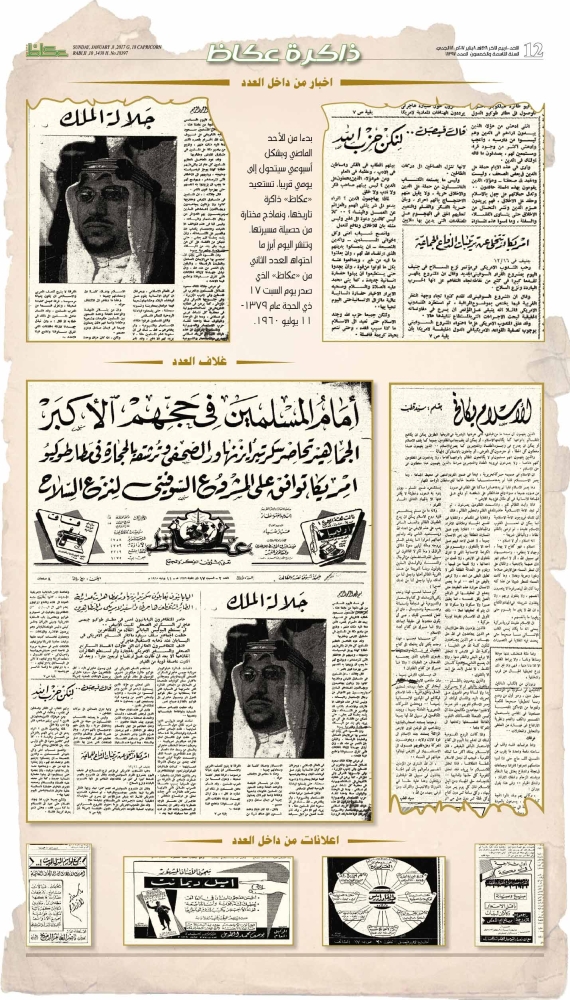 عكاظ > محليات ذاكرة عكاظ 8 يناير 2017 - 02:17 | آخر تحديث 8 يناير 2017 - 02:17 تابع قناة عكاظ على الواتساب بدءا من الأحد الماضي وبشكل أسبوعي سيتحول إلى يومي قريبا، تستعيد «عكاظ» ذاكرة تاريخها، ونماذج مختارة من حصيلة مسيرتها. وتنشر اليوم أبرز ما احتواه العدد الثاني من «عكاظ» الذي صدر يوم السبت 17 ذي الحجة عام 1379- 11 يوليو 1960.
