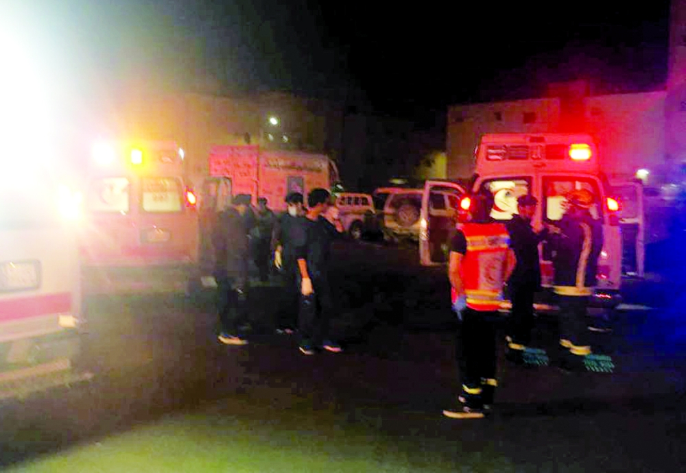 مسعفون خلال مباشرة الإصابات. (عكاظ)