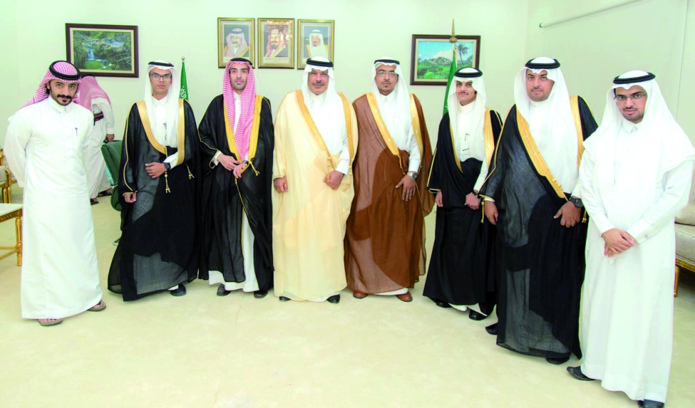أمير الباحة مع أعضاء مجلس شباب المنطقة. (عكاظ)