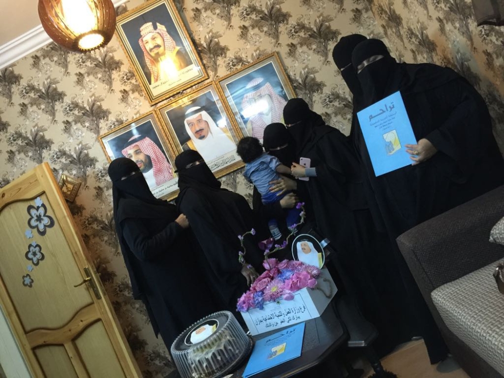 ابنة المعفو عنها جبارة تتلقى تهنئة وفد «العمل» و«تراحم». (عكاظ)