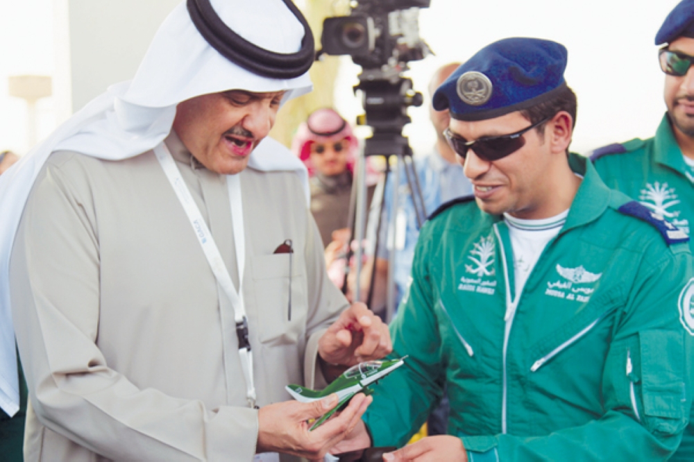 الأمير سلطان بن سلمان مطلعا على نموذج لإحدى الطائرات. (تصوير: ماجد الدوسري)