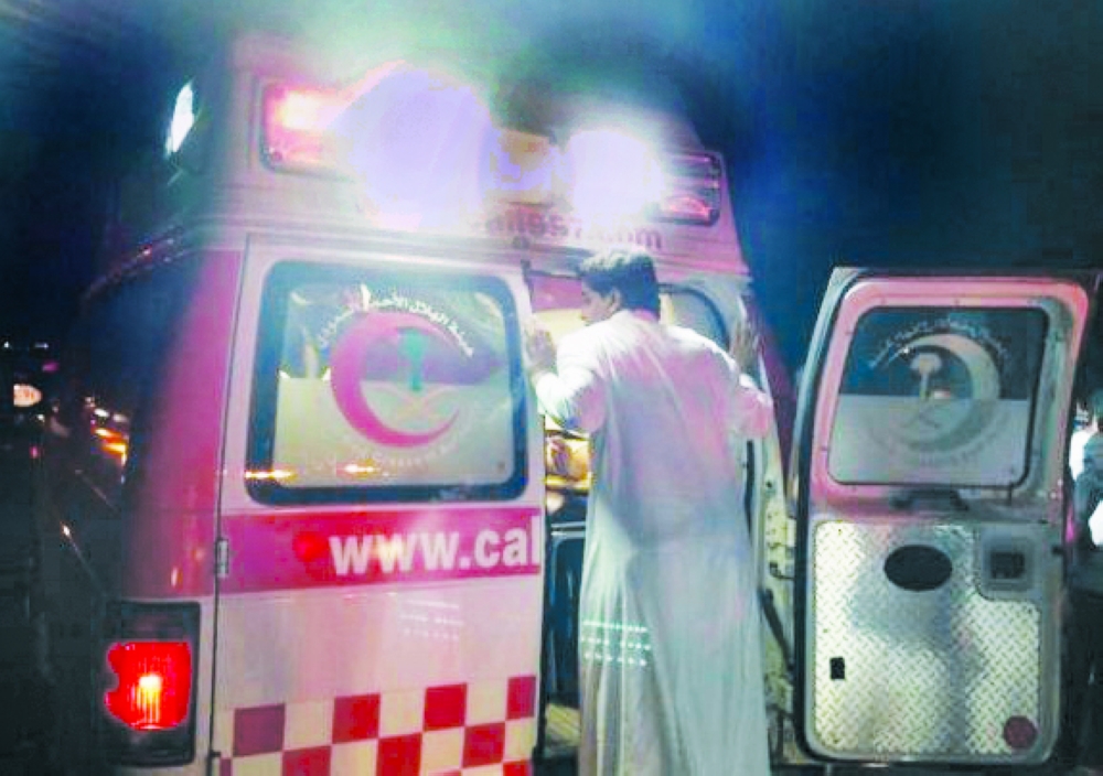 إسعاف الهلال الأحمر لدى نقله المصابين. (عكاظ)