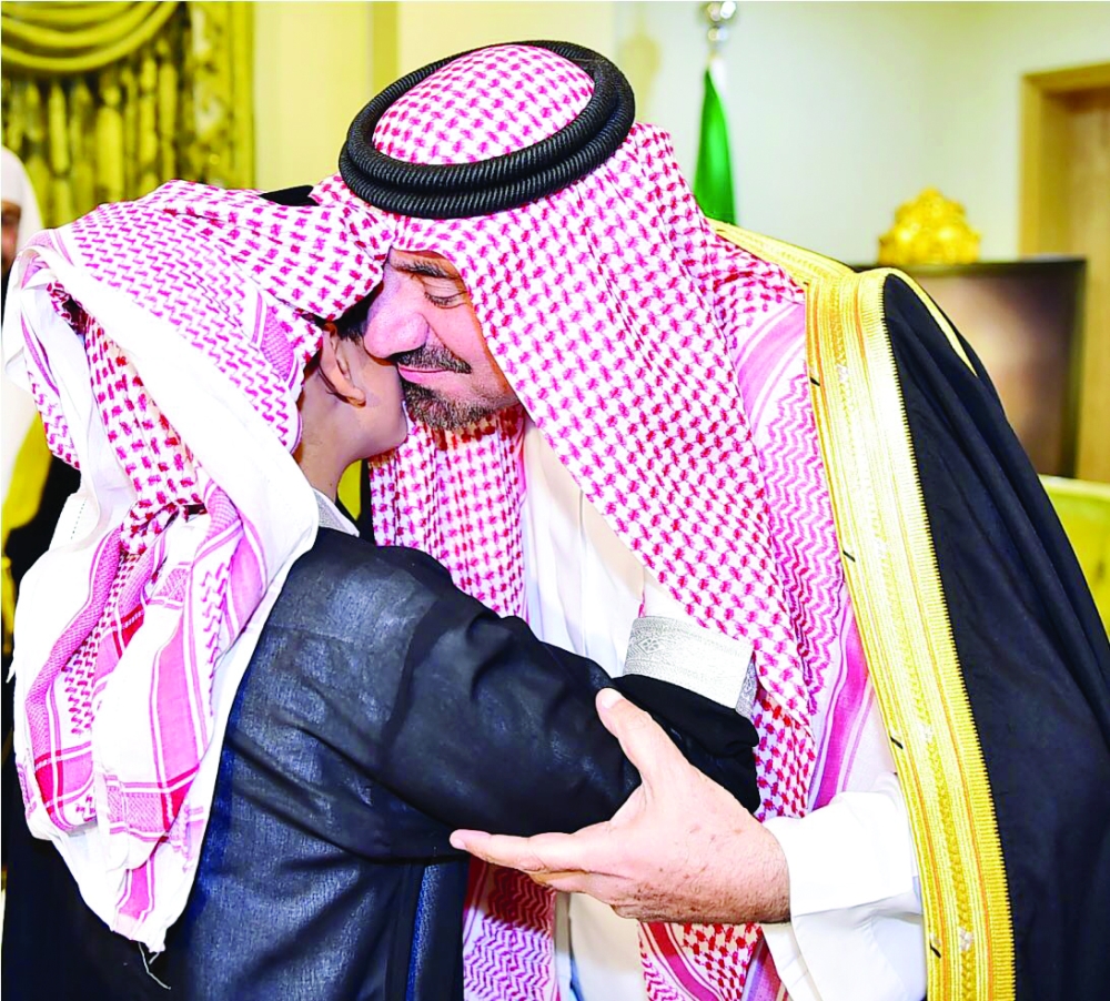 أمير نجران محتضناً أحد الأيتام. (عكاظ)