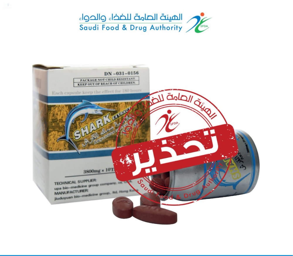 "الغذاء والدواء" تحذر من مستحضر (SHARK EXTRACT Tablet) لغشه بمادتين دوائيتين