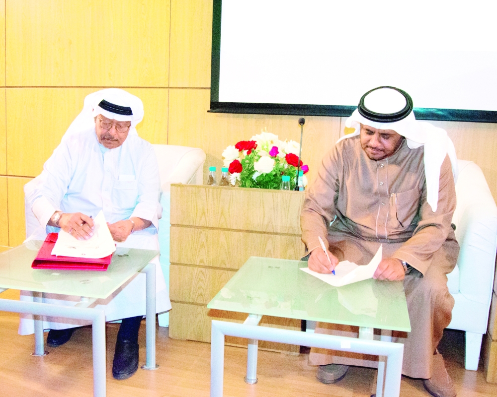 لسحيباني وخضر أثناء توقيع مذكرة التفاهم بين المنظمة والاتحاد أمس.