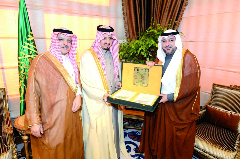 أمير عسير متسلما تقرير فرع مؤسسة النقد بعسير. (عكاظ)