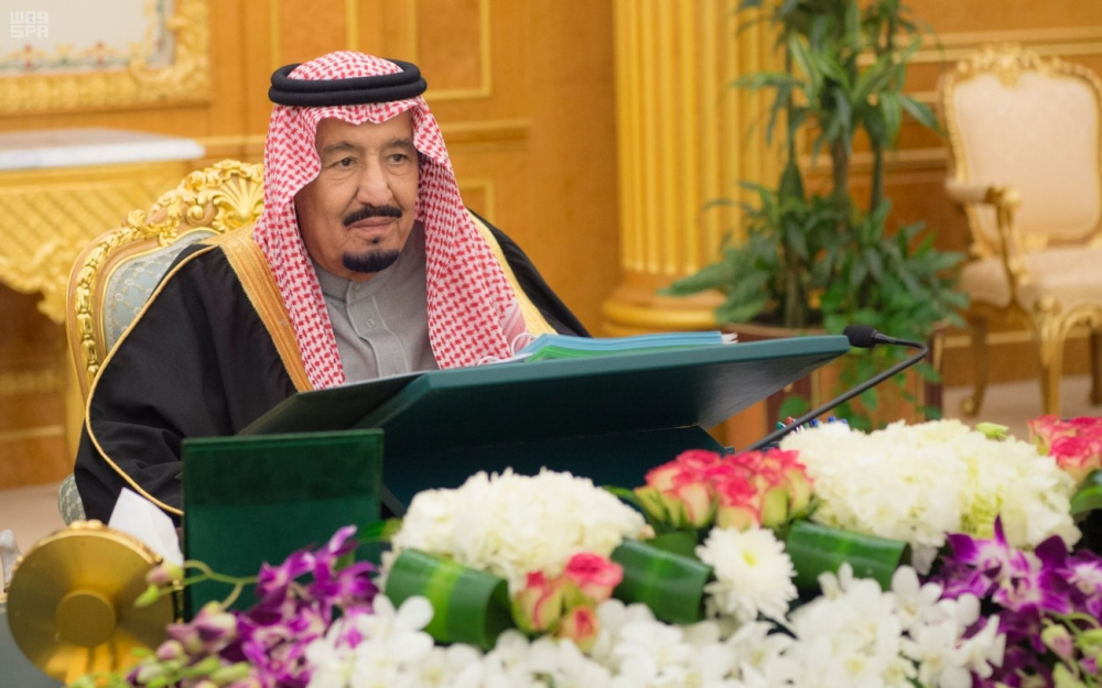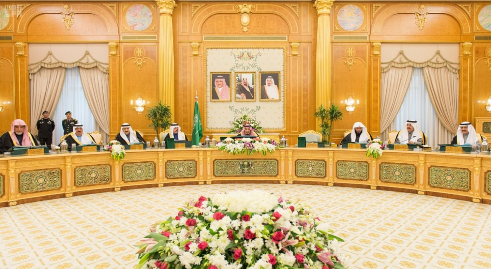 رأس خادم الحرمين الشريفين الملك سلمان بن عبدالعزيز الجلسة، التي عقدها، مجلس الوزراء، بعد ظهر اليوم الاثنين، في قصر اليمامة، بمدينة الرياض.