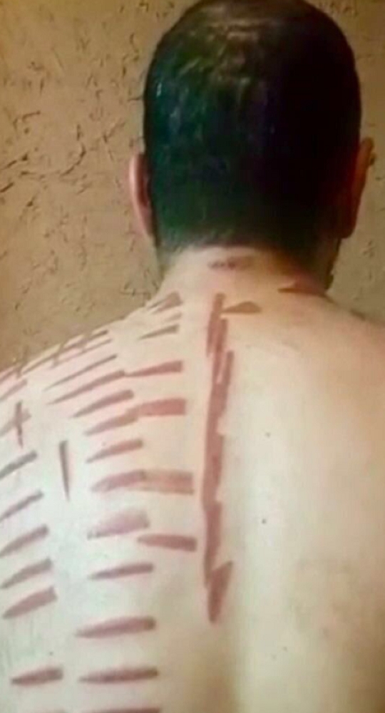 وكان مقطع جرى تداوله عبر برامج التواصل الاجتماعي، قد أظهر شخصاً مصاباً برعشه في إحدى يديه، وقام المدعي بكي أغلب أجزاء جسمه".