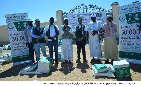 إنفاذاً لتوجيهات خادم الحرمين الشريفين الملك سلمان بن عبدالعزيز قام فريق مركز الملك سلمان للإغاثة والأعمال الإنسانية بتوزيع 30 ألف سلة غذائية على المتضررين من الجفاف في إقليم أرض الصومال بحضور وزير الأوقاف والشؤون الدينية في الإقليم خليل عبدالله وعدد من المسؤولين في الإقليم.