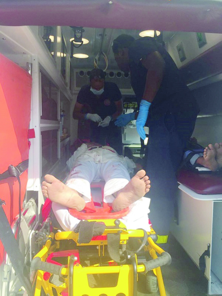 الهلال الأحمر يسعف ضحايا الحادثة. (عكاظ)