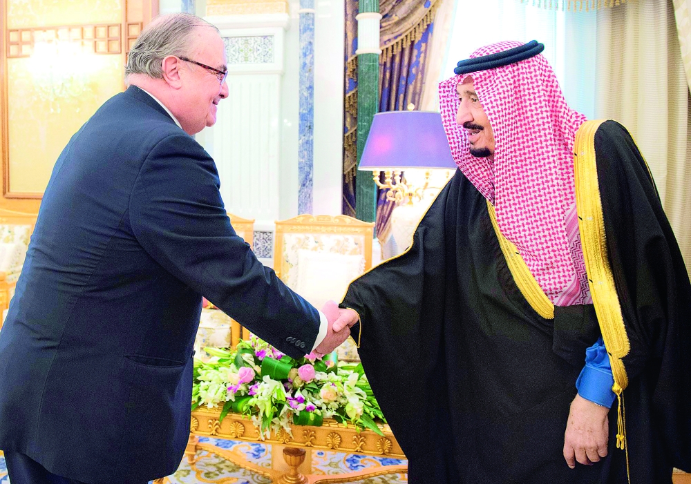 استقبل خادم الحرمين الشريفين الملك سلمان بن عبدالعزيز في مكتبه بقصر اليمامة في الرياض أمس (الإثنين)، نائب رئيس حكومة صربيا وزير التجارة والسياحة والاتصالات رئيس الوفد الاقتصادي الصربي راسم ليايتش، ونائب رئيس مجلس الوزراء بالبوسنة والهرسك وزير التجارة الخارجية والعلاقات الاقتصادية رئيس الوفد الاقتصادي البوسني ميركو شاركوفيتش والوفدين المرافقين لهما.