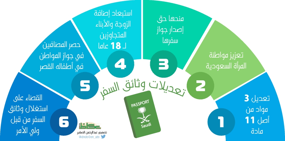 ويستثني التعديل المتزوج أو المتزوجة ومن هم دون 18 عاماً من شرط ولي الأمر، ويقصر الإضافة في جواز السفر على أبناء وبنات حامل الجواز والمشمولين بولايته شرعاً (القاصرون فقط).