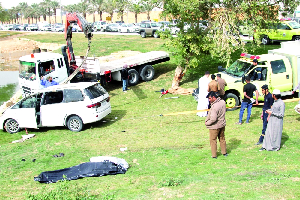 لقي طفل وشقيقته وسائقهما مصرعهم بعد سقوط المركبة التي تقهلم داخل بحيرة مياه على طريق الملك خالد مع تقاطع شارع العروبة بالرياض، وباشرت الفرق الأمنية الموقع وانتشلت الجثث من داخل البحيرة.