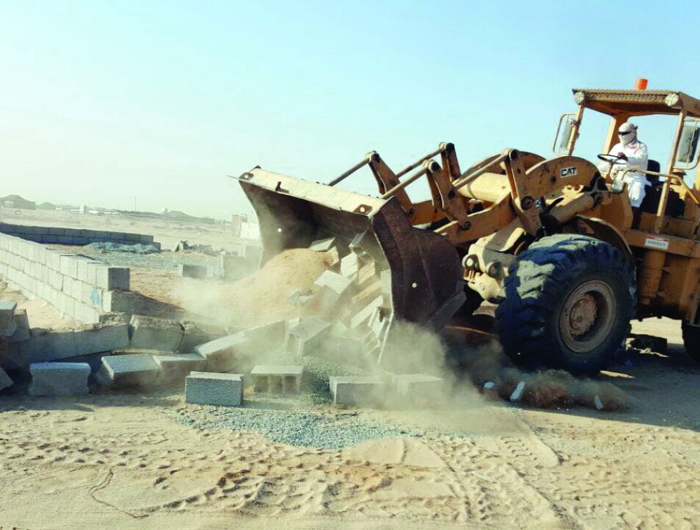 آلية تنفذ إزالة لتعديات في جدة. (عكاظ)