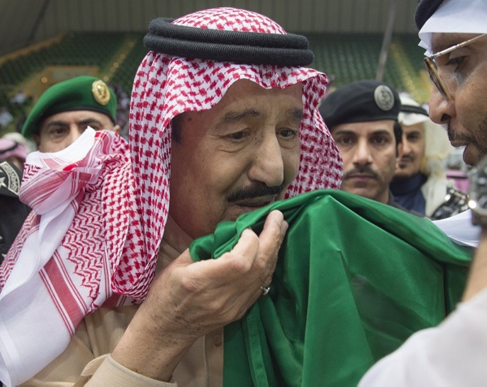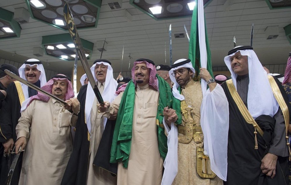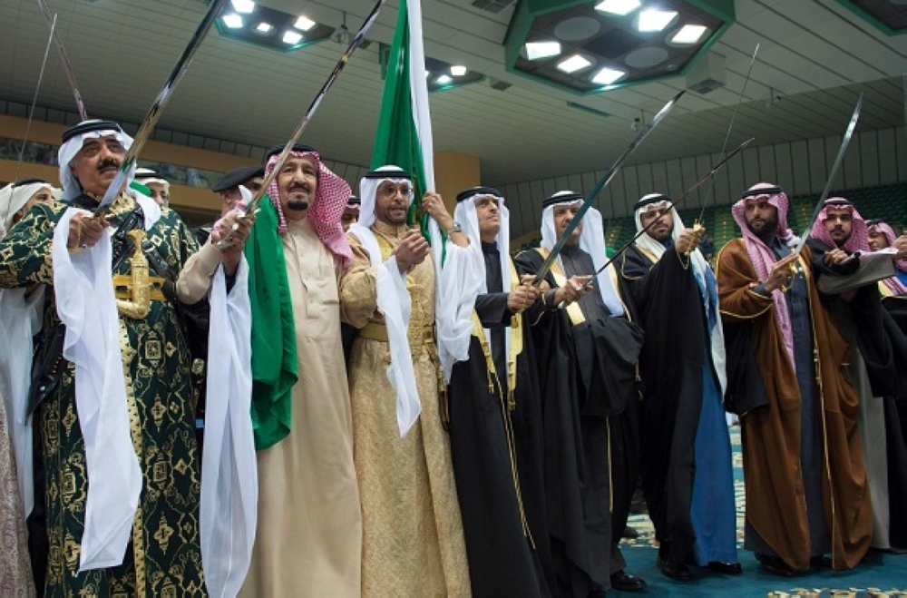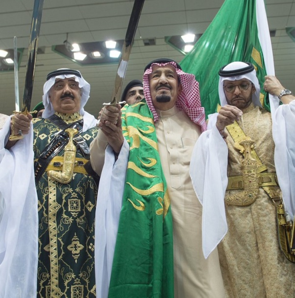 بعد ذلك تشرف الأمراء بالسلام على الملك سلمان. وبعد أن أخذ مكانه في المنصة الرئيسية للاحتفال بدأت العرضة السعودية.