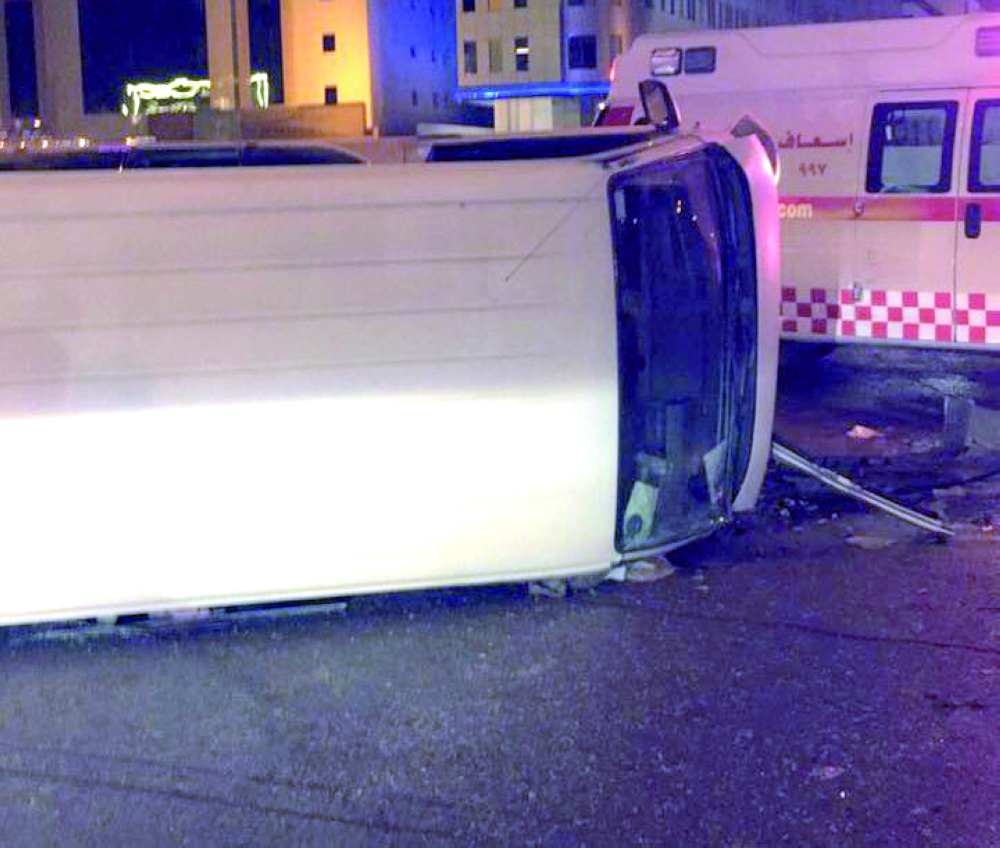 انقلاب حافلة العمال بالرياض. (عكاظ)