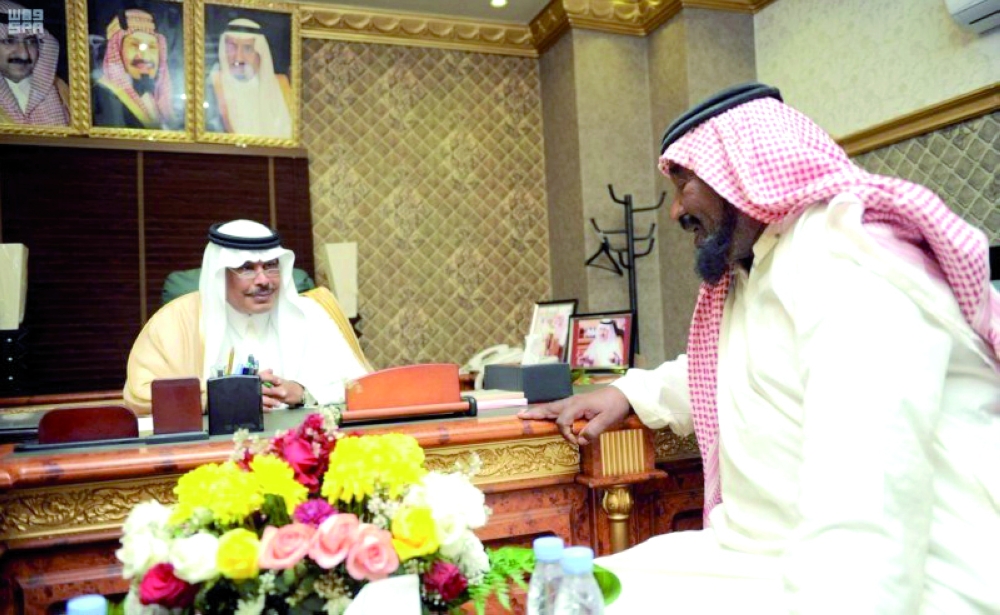 أمير الباحة مستمعا لأحد المواطنين في غامد الزناد. (عكاظ)